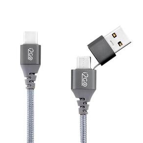 Cabo USB-C + USB-C com adaptador USB-A 2M Nylon I2GO PRO