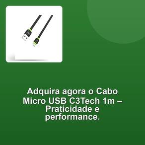 Perfeito para quem valoriza desempenho e estilo, este cabo é essencial para maximizar a eficiência de seus dispositivos Android. Não perca a oportunidade de contar com um acessório que combina tecnologia de ponta, praticidade e durabilidade. Escolha o Cabo USB Micro para Android C3Tech CB-100Bk e transforme sua experiência de recarga e sincronização em algo rápido e descomplicado.