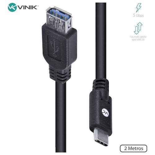 Cabo Usb Tipo C Para Extensor Usb A Femea Gen1 5gbps 2 Metros - C32uaf-2 Descrição A linha Tipo C (Type C) é a mais aplicação dos padrões USB. Praticamente todos dispositivos lançados no mercado recentemente contam com pelo menos, uma porta tipo C, como Smartphones, notebooks, computadores, pendrives, etc. Afinal, o que é o Tipo C? O padrão USB tipo C permite carregar e transferir dados entre dispositivos de forma muito mais rápida, já que trata-se de um cabo com maior capacidade. Além disso, a conexão tipo C pode transferir pacote de dados (rede) e também imagem e áudio digital (através de um HUB com saída HDMI). Seu grande diferencial que é a entrada tipo C é bidirecional, ou seja, pode ser encaixada de qualquer lado. Conexão 10 vezes mais rápida que a USB para transmissão de dados. Este cabo é recomendado para utilizar como extensor USB, possibilitando conectar um dispositivo que esteja a uma distância maior. Dados técnicos Padrão: USB Tipo C Gen1 Conectores: Tipo C x USB A fêmea Velocidade de transmissão: até 5 Gbps Voltagem: 5V Comprimento: 2 metros Cor: Preto Material do revestimento: PVC emborrachado Diâmetro: 5mm Ean: 7908020909149