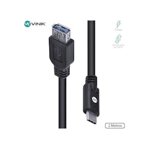 Descrição A linha Tipo C (Type C) é a mais recente aplicação dos padrões USB. Praticamente todos novos dispositivos lançados no mercado recentemente contam com pelo menos, uma porta tipo C, como Smartphones, notebooks, computadores, pendrives, etc. Afinal, o que é o Tipo C? O novo padrão USB tipo C permite carregar e transferir dados entre dispositivos de forma muito mais rápida, já que trata-se de um cabo com maior capacidade. Além disso, a conexão tipo C pode transferir pacote de dados (rede) e também imagem e áudio digital (através de um HUB com saída HDMI). Seu grande diferencial que é a entrada tipo C é bidirecional, ou seja, pode ser encaixada de qualquer lado. Conexão 10 vezes mais rápida que a USB 2.0 para transmissão de dados. Este cabo é recomendado para utilizar como extensor USB, possibilitando conectar um dispositivo que esteja a uma distância maior. Dados técnicos Padrão: USB Tipo C 3.2 Gen1 Conectores: Tipo C x USB A fêmea Velocidade de transmissão: até 5 Gbps Voltagem: 5V Comprimento: 2 metros Cor: Preto Material do revestimento: PVC emborrachado Diâmetro: 5mm