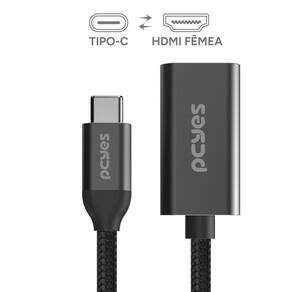 CABO USB TIPO-C PARA HDMI F??MEA 2.1 8K/60HZ - PRETO - 15CM - NYLON - PUCM-15P