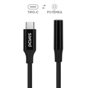 1 Adaptador USB Tipo-C para P3 Fêmea ? 15 cm ? Preto (P3UCP-15P)