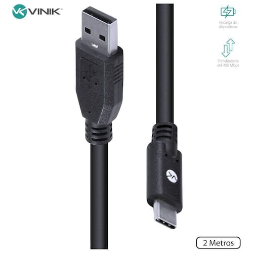 Cabo Usb Tipo C X Usb A Macho 2 Metros - C20uam-2 A linha Tipo C (Type C) é a mais aplicação dos padrões USB. Praticamente todos dispositivos lançados no mercado recentemente contam com pelo menos, uma porta tipo C, como Smartphones, notebooks, computadores, pendrives, etc. Afinal, o que é o Tipo C? O padrão USB tipo C permite carregar e transferir dados entre dispositivos de forma muito mais rápida, já que trata-se de um cabo com maior capacidade. Além disso, a conexão tipo C pode transferir pacote de dados (rede) e também imagem e áudio digital (através de um HUB com saída HDMI). Seu grande diferencial que é a entrada tipo C é bidirecional, ou seja, pode ser encaixada de qualquer lado. Este cabo é recomendado para transmissão de dados e carregar smartphones e/ou outros dispositivos compatíveis através de uma porta USB (ou ), no qual a velocidade de transmissão é menos eficiente em relação a uma Dados técnicos Padrão: USB Tipo C Conectores: Tipo C x USB A macho Velocidade de transmissão: até 480 Mbps Voltagem: 5V Comprimento: 2 metros Cor: Preto Material do revestimento: PVC emborrachado Diâmetro: 5mm Ean: 7908020909163