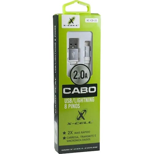 O cabo de dados USB/Lightning 8 pinos Flat 2.0 é compatível com todos dispositivos portáteis com as interfaces lightning 8 pinos e USB, tais como: Iphone, Ipad e Ipod.