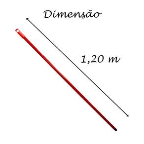 Cabo de metal com rosca na medida de 1,20m. Com ponteira plástica e encaixe rosqueável. Recoberto por capa plástica para maior proteção e impermeabilidade do produto. material mais leve e durável do que o cabo de madeira. É utilizado tanto em vassouras, rodos e esfregões.