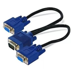 - Blindagem De Sinal Emf Para Manter Sinal De Qualidade E Prevenir Fantasmas Na Tela -Um Lado Com Um Plugue Macho Vga De 15 Pinos E Outro Lado Com 2 Plugues Fêmeas Para 2 Monitores Ou 2 Display Lcd.