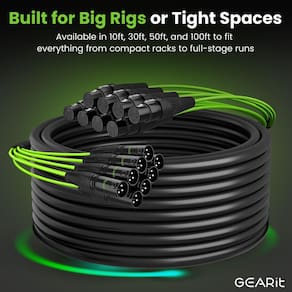 - Etiquetas de canal transparentes para fácil configuração - Usar uma cobra de cabo deve tornar sua vida mais fácil. É por isso que esta cobra XLR possui etiquetas de canal transparentes na parte superior de cada conector, para que você sempre possa dizer qual sinal é qual, mesmo em espaços com menos luz, como atrás de uma mesa ou alto-falante.
