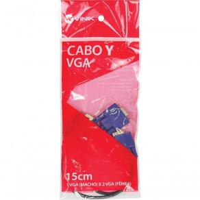 O cabo Y VGA possibilita a conexão de dois monitores com saída VGA em uma única placa de vídeo, para operar em modo espelho ou tela estendida.;