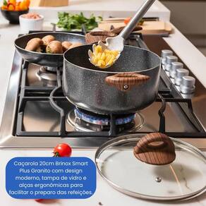 Com capacidade de 2,55 litros, a caçarola 20cm é ideal para preparar molhos, refogados, risotos e outras receitas que pedem cozimento delicado e uniforme. Seu design com acabamento marmorizado na cor granito agrega beleza e sofisticação ao seu ambiente culinário, tornando-a um item funcional e decorativo.