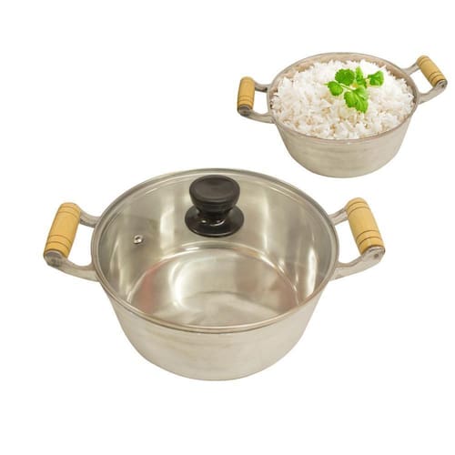Caçarola Alumínio Fundido com Tampa de vidro e Pomel N 22Caçarola Alumínio Fundido com alças de madeira resistem ao calor propagado pelas paredes da Caçarola ao ser levado ao fogo auxiliando no manejo durante seu uso.Este jogo são daqueles que passam de geração em geração trazendo o sabor da boa comida a todos que experimentam cozinhar por elas.Aposto que já ouviu muita gente dizer: Não se fazem panelas como antes.E nós somos a prova que SIM fazemDura muito, não estraga fácil e são peças para muitos anos.Essas peças são fabricadas utilizando o mais puro alumínio, dando durabilidade, resistência além de um acabamento lindo.Saiba algumas das muitas qualidades deste jogo:- Peças grossas e resistentes- Alta facilidade de aquecimento- Tampa de vidro temperado resistente- Puxadores em madeira, resistentes- Alça muito reforçada, além de muito bem feitaMedidas:23cm Diâmetro total22cm Diâmetro interno9,5 cm de Altura31 cm de LarguraEspessura 3mmCapacidade: 2950ml