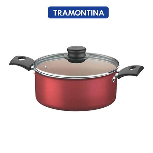 CACAROLA ANTIADERENTE COM ALCA E TAMPA DE VIDRO TURIM VERMELHA 18CM DE Ø