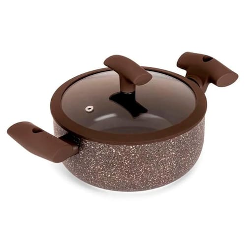 A Caçarola Antiaderente Hércules 20 cm com Indução 2,5 Litros Marrom é capaz de conduzir o calor do fogo para acelerar o cozimento e não libera componentes tóxicos na preparação dos alimentos. Use somente utensílios de materiais não abrasivos para não riscar a superfície.