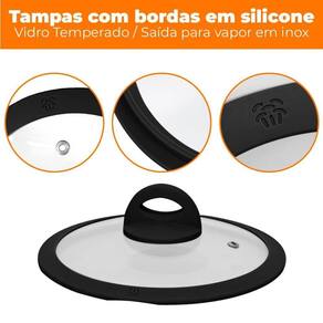Características: Marca: Casambiente Referência: AL195 Modelo: Viena Full Black Material da Panela: Alumínio Material do Cabo: Baquelite Soft-touch Material da Tampa: Vidro Temperado com borda em silicone Espessura: 2,5mm Cor: Preto Quantidade: 1 peça
