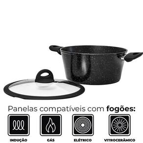 Características: Marca: Casambiente Referência: AL195 Modelo: Viena Full Black Material da Panela: Alumínio Material do Cabo: Baquelite Soft-touch Material da Tampa: Vidro Temperado com borda em silicone Espessura: 2,5mm Cor: Preto Quantidade: 1 peça
