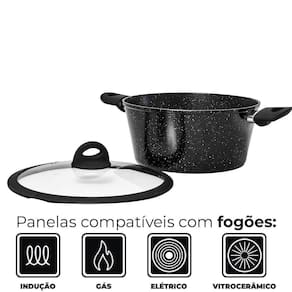 Características: Marca: Casambiente Referência: AL195 Modelo: Viena Full Black Material da Panela: Alumínio Material do Cabo: Baquelite Soft-touch Material da Tampa: Vidro Temperado com borda em silicone Espessura: 2,5mm Cor: Preto Quantidade: 1 peça