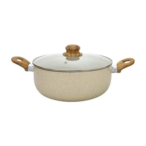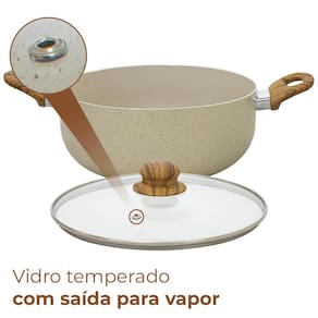 A Caçarola é produzida em alumínio na cor vanilla com revestimento cerâmico marble e classificação A do Inmetro, não gruda, é mais fácil de limpar e mais saudável, pois necessita de menos óleo para o cozimento e é livre de metais pesados.