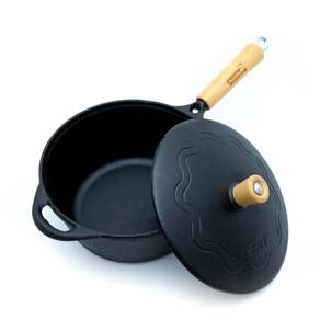 Itens inclusos: 01 caçarola ferro fundido alça de madeira 01 tampa de ferro