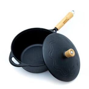 01 Caçarola Ferro Fundido Cabo de Madeira