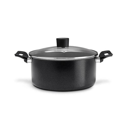 Prática e segura, a caçarola com tampa da linha Ebony, de 22x10cm com capacidade de 3,4 litros, tem estrutura de alumínio que dissipa melhor o calor cozinhando o alimento por igual e mais rapidamente. Já o revestimento interno antiaderente não deixa o alimento grudar mesmo com uso reduzido de óleo. O material também facilita a limpeza. A tampa é de vidro temperado e possui saída para o vapor. Com alças de baquelite, material que não aquece, o manuseio do utensílio fica mais fácil e seguro. A pintura externa preta, trazendo maior versatilidade e sobriedade para a sua cozinha. Ean: 7896502812622