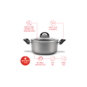 Prática e segura, a caçarola da linha Chilli, com capacidade de 4,5 litros, tem estrutura de alumínio que dissipa melhor o calor, cozinhando o alimento por igual e mais rapidamente. Já o revestimento interno antiaderente não deixa o alimento grudar mesmo com uso reduzido de óleo. De quebra, o material também facilita a limpeza. A tampa é de vidro temperado e possui saída para o vapor. Com cabo de braquelite, material que não aquece, o manuseio da caçarola, que vem na cor prata, fica mais fácil e seguro._x000D_