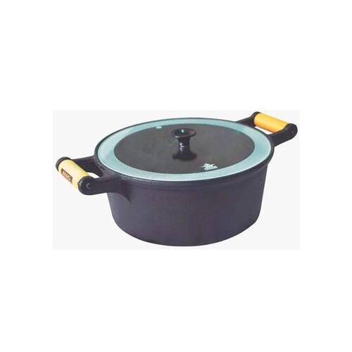 Caçarola de Ferro Alça Madeira e Tampa de Vidro 1,3 Litros