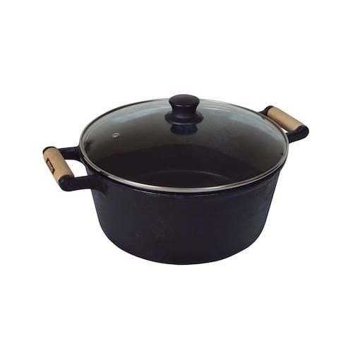 Caçarola de Ferro Alça Madeira e Tampa de Vidro 1,3 Litros