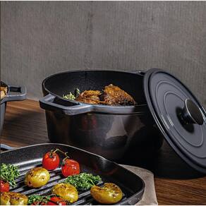 A linha de caçarolas Sauté é uma ótima opção para elevar o dia a dia na cozinha. Produzida em ferro fundido, retém o calor, distribuindo-o uniforme e lentamente, proporcionando melhor cozimento dos alimentos. Fácil de limpar, é resistente à altas temperaturas. Versátil, pode ser levada ao forno para gratinar alimentos. Produzidas em ferro fundido esmaltado, com processo de produção extremamente rigoroso e elevado padrão de qualidade. Sua tampa é plana e conta com um sistema de irrigação especial que permite um cozimento por igual com até 20% a mais de umidade. A Caçarola 3,6L Haus Concept preserva os sabores e nutrientes dos alimentos e foi projetada para todos os tipos fogões como gás, vitrocerâmico, elétrico e inclusive no de indução ou pista quente. Não é recomendável o uso de máquina de lavar louça para a higienização da Caçarola. ESPECIFICAÇÕES:- Marca: Brinox Linha: Sauté Cor: Cinza Material: Ferro fundido Esmaltado Espessura: 4,5mm Capacidade: 3,6L e 26 cm de diâmetro