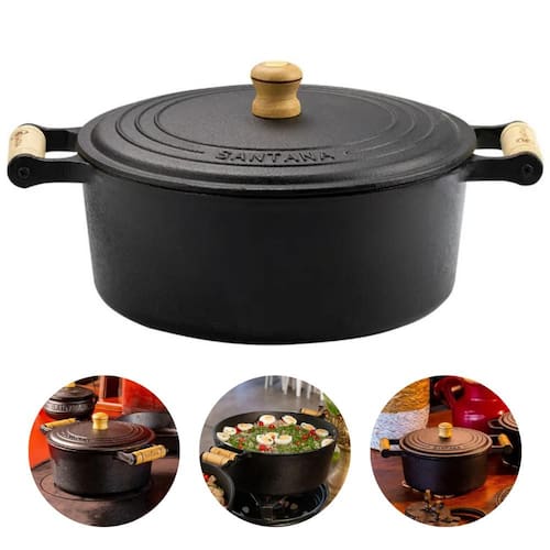 A Caçarola de Ferro Fundido Santana é um utensílio versátil e resistente, ideal para o preparo de diversas receitas no dia a dia. Perfeita para cozinhar arroz, feijão, frango, legumes e outros alimentos, proporciona praticidade e excelente desempenho na cozinha.