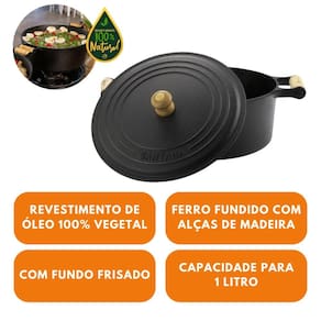 Caçarola 14 Com Alça de Madeira 1 L Ferro Fundido Com Tampa Santana