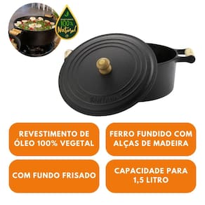 Caçarola 16 Com Alça de Madeira 1,5 L Ferro Fundido Com Tampa Santana