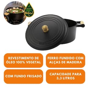 Caçarola 22 Com Alça de Madeira 3,3 L Ferro Fundido Com Tampa Santana