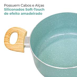 Possui cabos e alças siliconados Soft-touch com design amadeirado que dão um toque macio e não esquentam, evitando acidentes, além disso, a tampa é de vidro temperado com bordas e saída para vapor em inox, trazendo um design inovador, ideal para você que gosta de sofisticação e elegância em sua cozinha!