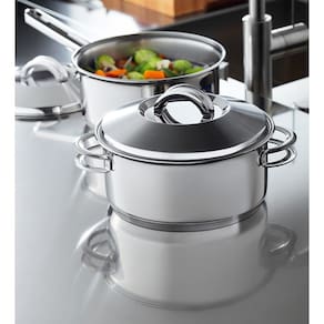 A caçarola elaborada pela Tramontina é fabricada em aço inox de excelente qualidade, garantindo maior durabilidade, resistência e beleza. Além de ser fácil de limpar, ela não solta nenhum resíduo nos alimentos, mantendo-os saudáveis. Além disso, possui fundo triplo (aço inox + alumínio + aço inox) que distribui o calor uniformemente, proporcionando um cozimento mais rápido e uniforme. Conta também com acabamento em alto brilho e um design super moderno, agregando requinte e sofisticação à mesa.