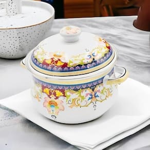 A Caçarola Esmaltada Vintage é uma peça clássica e funcional para a sua cozinha. Com esmaltação tanto interna quanto externa, esta caçarola é projetada para atender diversas necessidades: