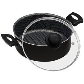 A Caçarola Especial Antiaderente Texturizada de 22 cm da Eirilar é ideal para quem busca qualidade e funcionalidade no preparo diário dos alimentos. Fabricada pela tradicional Indústria de Alumínios Eirilar, a peça conta com revestimento interno antiaderente texturizado, que evita que os alimentos grudem e facilita tanto o cozimento quanto a limpeza. O design moderno é complementado por tampa de vidro temperado, que confere elegância ao produto e permite visualizar o preparo sem precisar abrir. Os cabos e pomel (pegador da tampa) são produzidos em baquelite antitérmico, material que oferece maior segurança durante o uso, por resistir ao calor proveniente das laterais da panela. ?? Atenção: Não recomendada para uso em forno, pois os componentes em baquelite não suportam altas temperaturas. Especificações Técnicas: