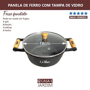 Adquira agora mesmo a Panela Caçarola De Ferro Alça De Madeira Tampa Vidro 18Cm e tenha em sua cozinha um produto de alta qualidade que irá facilitar o seu dia a dia na hora de cozinhar. Marca: Casa Jardim