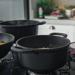Vicenza Os modelos Vicenza são compostos por um conjunto completo de panelas e frigideiras, construídas em alumínio injetado nos mais altos padrões de qualidade e resistência. Possuem visual elegante, transmitindo robustez e durabilidade. Sempre prontas para atender às necessidades de quem não abre mão de qualidade ao preparar uma bela e saborosa refeição. Qualidade: As panelas e frigideiras Vicenza são desenvolvidas em uma liga especial de alumínio de alta qualidade e revestida em material antiaderente. Tanto por dentro quanto por fora e livre de PFOA, garantindo assim integridade à saúde e ao sabor no preparo de refeições.