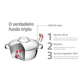 Caçarola Funda Fundo Triplo Tramontina Allegra 62654200 Inox Caçarola Funda Fundo Triplo Tramontina Allegra 62654200 Inox - Características Gerais do Produto: Dimensões AxLxP (mm): 165x275x222 Material: Aço Inox Tecnologia da Panela: Fundo Triplo Linha: Allegra Tampa: Sim, com saída de vapor Capacidade da Panela: 3,1L Pode ir ao forno?: Sim, para gratinar ou finalizar pratos na temperatura máxima de 260C. Pode ir à Máquina de Lavar Louças?: Sim Tipo de Fogão: Gás, elétrico, vitrocerâmico e indução