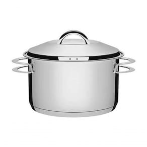 A Tramontina usa a mais alta tecnologia para produzir panelas de aço inox com fundo triplo. São duas camadas de aço inox envolvendo uma camada de alumínio. Dessa forma, o calor da chama se distribui por igual, deixando os alimentos muito mais macios e saborosos. Além disso a comida cozinha muito mais rápido, o que acaba gerando economia.