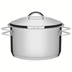 - Economiza tempo e energia: o segredo está no fundo triplo (aço inox + alumínio + aço inox), que distribui o calor uniformemente, proporcionando um cozimento mais rápido. Por isso, você pode manter o fogo baixo durante todo o preparo e, assim, poupar energia. Além disso, a caçarola toda em aço inox pode ir ao forno para gratinar ou finalizar pratos, na temperatura máxima de 260C.