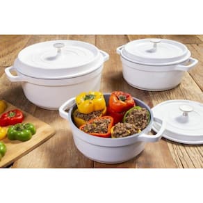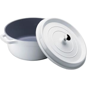 Suporta altas temperaturas, pode ir do fogão convencional e de indução direto à mesa. Em alumínio fundido e revestimento antiaderente de cerâmica, é mais resistente e reduz o uso do óleo nos seus preparos, além da sua tampa pinga gotas que auxilia no uso e na hora de servir. Lave com água e detergente neutro ou pode ser levada à máquina de lavar louças. Não coloque no micro-ondas, geladeira ou freezer.
