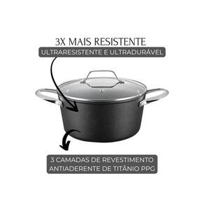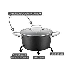 A Caçarola Black Rock da Mimo Style é ideal para quem busca praticidade e qualidade na cozinha. Com estrutura em alumínio e inox, possui fundo triplo de 4,5 mm, garantindo excelente distribuição de calor e resistência à corrosão. Seu revestimento antiaderente livre de PFOA facilita o preparo e a limpeza. Acompanha tampa de vidro temperado, permitindo o acompanhamento do cozimento. Compatível com fogões a gás, elétrico, vitrocerâmico e indução.