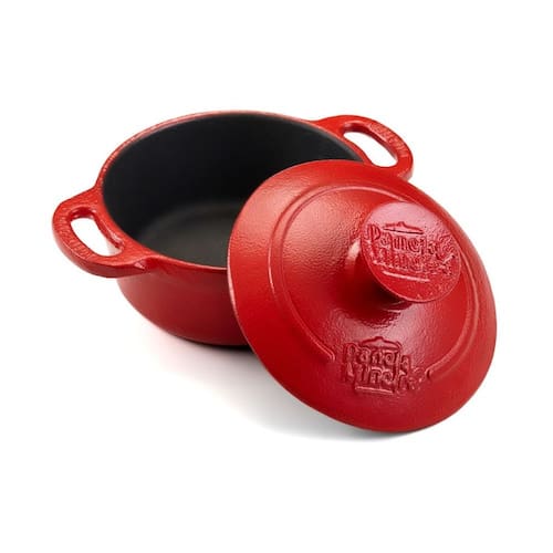 Caçarola Mineirinha Tampa Ferro Vermelha Panela Mineira 10cm A Caçarola Mineirinha Alça e Tampa de Ferro da Panela Mineira é ideal para servir porções individuais e acompanhamentos como molhos e caldos, pois oferece excelente distribuição e retenção de calor característicos do ferro fundido, design moderno que encanta qualquer apresentação. Onde usar: Pode ser utilizado em fogões a gás, a lenha, elétricos, cooktops de indução, vitro-cerâmicos, fornos, grills, churrasqueiras e fogo de chão. Orientação de Uso e Conservação:Antes do primeiro uso: Lave com água e sabão, seque bem com um pano e leve ao fogo para remover toda a umidade. Já vem pronta para uso, então não precisa ser curada. Guarde em um local seco. Após cada uso: Lave com água e sabão, usando uma esponja ou escova para remover todos os resíduos de alimentos. Se restarem resíduos, ferva água com um pouco de detergente para soltá-los. Pintura: Revestimento atóxico que garante durabilidade e proteção prolongada, sem causar nenhum dano à saúde. Pode ser usada no forno, porém, é importante ressaltar que a exposição ao calor elevado pode danificar a pintura, causando manchas ou queimaduras na superfície externa. Características Técnicas e Medidas:Linha: Bares e Restaurantes.Altura Com Tampa: 10,5cm.Altura Sem Tampa: 4cm.Material: Ferro Fundido.Modelo: Redonda.Diâmetro: 10cm.Litragem: 0,3L.Peso: 1,1Kg.Chapa: Lisa.Alça: Ferro. Itens Inclusos:01 Caçarola Mineirinha Alça de Ferro Vermelha Panela Mineira 10cm.01 Tampa em Ferro Fundido Vermelha Panela Mineira 10cm.01 Batoque em Ferro Fundido Vermelho. Código: 4581PM ProdutoLojaPlast.