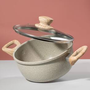 Com capacidade de 4,5 litros, essa caçarola é fácil de limpar e possui pegadores revestidos em silicone, proporcionando mais firmeza ao segurar. A tampa de vidro temperado permite visualizar o alimento preparado sem dificuldades.