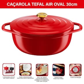 Leve mais leveza e praticidade para o seu dia a dia com a Caçarola Oval Tefal Air Alumínio Fundido 30cm, criada pela Tefal, a marca número 1 do mundo em utensílios de cozinha.