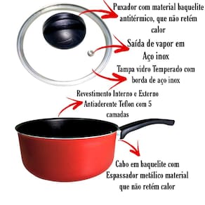 Caçarola Panela n20cm Antiaderente + Colher NylonCozinhar é a arte de misturar sabores e encantar, é na cozinha que a mágica acontece, que os amigos se reúnem, que as alegrias se multiplicam ....Beleza, elegância e charme na hora de cozinhar, você vai se apaixonar por essa imponente Caçarola Panela n20 cm Antiaderente, composto por 1 caçarola, com material de alta qualidade, resistente, incrivelmente lindo e elegante. Gostaria de dar um toque de modernidade e praticidade, para a sua cozinha?Caçarola Panela n20cm Antiaderente, com tampa de vidro temperado, tampa com saída de vapor e borda de aço inox, panela com design arrojado, que se destacam pela qualidade e versatilidade, produzido com alumínio de alta qualidade, peças com maior resistência e durabilidade, alumínio que distribui melhor o calor, proporcionando um cozimento mais rápido e uniforme do alimento, as Panelas são revestidas com 5 camadas de antiaderente TEFLON (DuPont) - PFOA Free, internamente e externamente, evitando que o alimento grude na superfície, o que facilita no preparo dos alimentos e proporciona praticidade no momento da limpeza. Ainda, possui alças com espaçador metálico, feito em baquelite, um material antitérmico, que não retém calor, contribuindo para um manuseio mais confortável e seguro.Especificações Técnicas:Dimensões- 1 Caçarola 20 cm de diâmetro c/ tampa de vidro ( Capacidade 2,6 Litros )Material: Alumínio RevestidoRevestimento Interno: Antiaderente Teflon Externo: Antiaderente Teflon Tampa: Tampa de Vidro TemperadoAlça: BaqueliteEmbalagem: Saco Plástico / Caixa PardaDimensões aproximadas da embalagem (AxLxP): 17,5 x 31 x 26,5 cmGarantia do fornecedor: 30 dias contra defeitos de fabricação.Cuidados:- Antes de usar pela primeira vez, lave com esponja macia, detergente neutro, depois de secar, unte a área interna com óleo e aqueça em fogo baixo por 1 minuto. Deixe esfriar é só lavar e seu produto está pronto para uso, sempre em fogo baixo ou médio (nunca superior a 350°C);- Ideal para fogão a gás, elétrico e vitrocerâmico com resistência elétrica;- Para mexer os alimentos use somente utensílios de silicone ou nylon;- Nunca use utensílios de metal ou objetos pontiagudos;- Mantenha o produto sobre a chama do fogão apenas o necessário para o cozimento;- Não exponha as alças e cabos diretamente ao fogo ou fonte de calor prolongado;- Não pode ser levada ao forno e/ou microondas;- Evite a imersão do produto quente em água fria. Sempre o deixe esfriar antes de lavar;- Para limpeza, utilize sabão ou detergente neutro e esponja macia;- Nunca utilize solventes, objetos cortantes ou abrasivos;- Para maior durabilidade do produto recomenda-se secar bem antes de guardar.Detalhes:- Com Antiaderente Teflon PFOA Free, que garante a ausência de elementos nocivos à saúde em sua composição- Ao comprar sua Caçarola Panela n20cm Antiaderente, você receberá em seu endereço: 1 Caçarola 20 cm. *A Caçarola acompanham tampa de vidro.- Itens decorativos não acompanham o produto. Imagens meramente ilustrativas (a cor do produto pode sofrer alteração de acordo com a qualidade do monitor).- Para descarte dos produtos e embalagens siga as orientações de reciclagem vigente.Boas compras !!