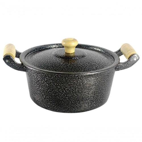 Caçarola Panela Reta Craqueada de Alumínio Alça Madeira 40cm
