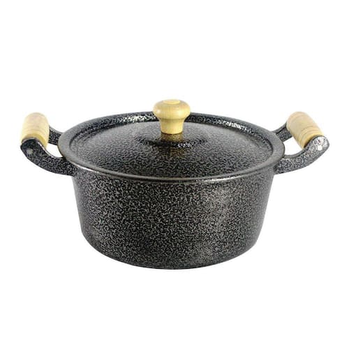01 Caçarola Panela Reta Craqueada de Alumínio Alça Madeira Preta 20cm