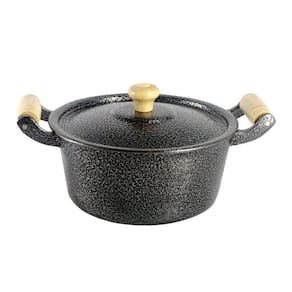 Caçarola Panela Reta Craqueada de Alumínio Alça Madeira Preta 20cm