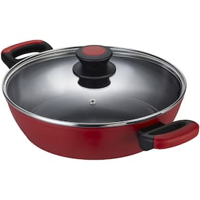 A Caçarola Rasa Oxford 28cm da linha Everyday oferece saúde e praticidade, com revestimento cerâmico e corpo de alumínio forjado torna a limpeza mais fácil, além de garantir uma maior resistência e ser livre de substâncias tóxicas como o PFOA. Sendo prática e funcional, é compatível com todos os tipos de fogões, com alças soft touch, proporciona mais segurança e conforto ao manusear a caçarola. Marca: Oxford Código do Fabricante: 138732 Linha: Everyday Cor: Vermelho Material: Alumínio Forjado Revestimento Cerâmico: Sim Diâmetro: 28cm Capacidade: 4,2L Fogões Compatíveis: Gás, elétrico, vitrocerâmico e indução Espessura: 3mm Material das Alças/Pegadores: Baquelite Possui Tampa: Sim Material da Tampa: Vidro Temperado Compatível com Micro-ondas: Não Compatível com Lava-louças: Não Pode ir ao Forno: Não Pode ir ao Freezer: Não Saída para Vapor: Sim Livre de PFOA: Sim